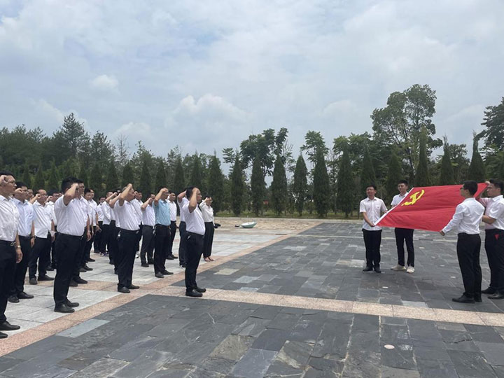 大家首先前往蘇區時蘇維埃政府工作的模范鄉——長岡鄉,領悟中國共產黨人深厚的為民情懷、科學的思想方法和務實的工作作風。隨后大家懷著對革命先烈無比崇高的敬意瞻仰了中央蘇區烈士陵園。在烈士紀念碑前,整齊列隊,懷著無比崇敬的心情,向革命先烈敬獻花籃,默哀并三鞠躬,深切緬懷革命先烈。全體黨員在莊嚴的黨旗下,高舉右拳重溫入黨誓詞,再次接受心靈的凈化和洗禮,銘記共產黨員初心使命。工程管理公司一、二支部還宣講了黨史故事,講述了江善忠“死到陰間不反水,保護共產黨萬萬年”和李美群“馬前托孤女英雄”的英烈事跡。